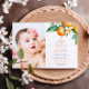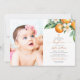 Elegant Orange Blommigt Fotodobaptism Inbjudningar