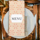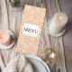 Elevate your reception tables with this elegant orange floral wedding menu card, designed with a soft patterned background and refined minimalist layout. The delicate orange motif adds warmth and charm, while the clean central label keeps your menu details beautifully highlighted and easy to read.