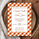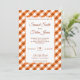 Förbluffa dina gäster med den här inbjudan från elegant bröllop med modern typografi mot en orange och vit gingham-bakgrund. Lägg bara till din händelseinformation i den här mallen som är enkel att använda för att göra den till en inbjudan av typen en.