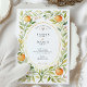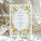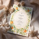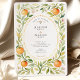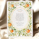 Fira kärlek i ett sol-härdat paradis med den här fantastiska bröllopsinbjudan. Den här vackra designen har en handmålad vattenfärg gräns av lush, mogna orangar och ömtåliga blommar av orange, som är kapslad mellan snygga löv av grönt. Den livliga och trevliga teckningen skapar ett vackert ovalt ram för dina bröllop-detaljer. I centrum av utformningen omsluter en charmig gräns i varma citrusfrukter av gult och orange elegant texten. Perfekt för en sommartid i bröllop, ett romantiskt mål i firande, eller ett par som tittar en färsk, vibrerande och tidlöst elegant.