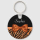 Elegant Orange Zebra tryck FAUX Glitz Bow och Namn Nyckelring