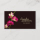 Ett vackert affärskort som har en elegant pulserande rosa orkidblomma på en rik chokladbrun bakgrund.