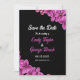 Denna inbjudan till bröllop spara datum i elegant är perfekt för en modern sommar-bröllop. Den enkla designen har vackra blommor av lila-orchid med svart elegant-kalligrafi på en fet svart bakgrund.
