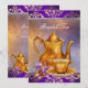 Vacker lila och guld bröllops-te-fest-inbjudan har en elegant lila och guld akvarellbakgrund med elegant guldfärgad tekanna och tekopp i porslin med lila och gula orkidéblommor. Denna vackra guld- och lila te-fest-inbjudan passar bra för en eftermiddagste-inbjudan, bröllops-te-fest-inbjudan eller någon annan speciell fest eller event och kan enkelt anpassas genom att helt enkelt välja "Anpassa!" för att börja lägga till din evenemangsinformation, teckensnittsstil, teckenstorlek och färg samt formulering. Observera att alla kort- och inbjudningsdesigner du hittar på Zazzle är tryckta grafikbilder utan faktiska ädelstenar, band, upphöjda, präglade eller tillagda delar eller detaljer.