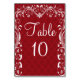 Elegant Ornate Flourish Red Bröllop Bord Bordsnummer