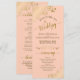 Det här vackra bröllopsprogrammet har en elegant med guld-text på blekens orange eller hörnpersikornas färgad och lacy golden faux foil curls och swirds i hörnen. Titlarna skrivs i finare-skriptkalligrafi, och det finns plats för din ceremoni och bröllopsfest, samt ett tack för kort för din gäst. Underbart sätt att välkomna dina vänner och din familj till bröllop firande.