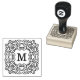 Elegant monogram gummi frimärke med ditt monogram initialer inringat av ett ornat ram. Monogramgummi frimärke är perfekt till använda för bröllop, tackkort, studenten, jul och mer! Välj mellan olika bläck-pad färg för att slutföra sökningen efter din speciella händelse.