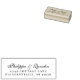 Elegant bröllop returadress gummi frimärke, med namn i ornate script och adress i serif-typsnitt.