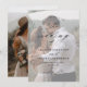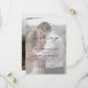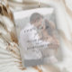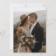 Ett enkelt och chic bröllopskort med detaljer i elegant script-kalligrafi och klassisk textöverlagring på ett porträttfoto på framsidan. Baksidan har ett foto som sträcker sig ända ut till kanterna. Klicka på redigeringsknappen för att anpassa denna design.