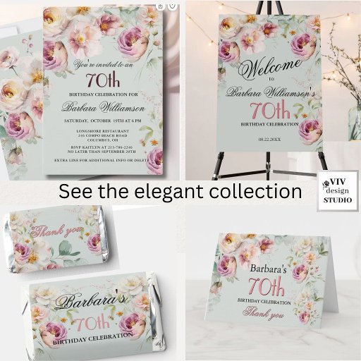 Start this special surprise 70th birthday celebration in a elegant style with this beautifully feminine gentle floral invitation with watercolor mixed wildflowers and trailing greenery. All of the text can be personalized for your party including the guest of honor's age. If you have any special requests or require design assistance, just send a chat and we'll be delighted to assist.