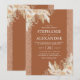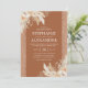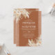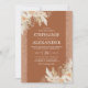 Eleganta boho-bröllopsinbjudningar med akvarell öken torkade palmlövar, pampasgräs, blommor, rostfärgad glitter och en modern bröllopsmall.