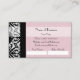 Sprid ut ord om ditt nya företag i fantastisk och låt klient och kund hjälpa dig med textrutorna för anpassningsbar av vänskapshänvisning på baksidan, med dessa affärskort för rosa och svart dämpningsmönster för elegant och trendig med ett flitigt rosa-band. Platt utskriven bild, inte faktisk menyflik.