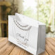 Vit och beige elegant bröllopsdusch Stor presentpåse med en silverpärlhalskedja i akvarell. Det är väldigt enkelt att anpassa med dina personliga detaljer.