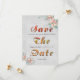 Elegant Päron Korall Blommor Bouquet Bröllop Spara Datum Kort har en texturerad look som ger det ett intressant utseende. Anpassa för ditt bröllop.