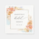 Gör din bröllopsfest extra speciell med dessa personliga blomster servetter, med en vacker akvarell blomster ram med kaskad vattenfärg fläckar. Bröllop i vacker modern handskriven kalligrafi. Blomster i en utsökt blandning av päron, kräm, champagne och rosafärgade nyanser. Ram i guld falsk folie. Samling med koordinerade produkter tillgänglig. Samling med koordinerade produkter tillgänglig.