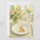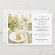 Den här påskbrunch-inbjudan har en elegant akvarellillustration av ett omsorgsfullt arrangerat dukat bord, komplett med blomsterarrangemang i mitten, kristallglas, silverbestick och en charmig kanin på tallriken. Designen förmedlar på ett effektivt sätt värmen från en påsksammankomst med familjen. Anpassa denna mångsidiga mall för inbjudan med dina detaljer, tillgänglig både som högkvalitativt kartongpapper och i praktiskt digitalt nedladdningsformat.