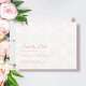 Låt dina gäster veta om ditt kommande bröllop med denna Eleganta Påskliljemönster Bröllop Spara Datum. Vackra persikor påskliljor skapade en delikat mönsterbakgrund i kombination med klassisk script font.