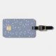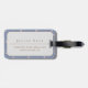 Vår Elegant Pastel Blue Blommigt Shiny Guld Monogram är perfektens val för vilken vintage som helst älskare. Den minimalistiska utformning som har initialer i ett känsligt glansigt guld ram mot känslig bakgrund för blommigten, stort utrymme för kontaktinformation och adress längst bak i bagagetaggen.