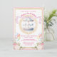 Gör ditt barns första födelsedag oförglömlig med denna beundransvärda och sofistikerade inbjudan. Konstruktionens mittpunkt är en vacker karusell med pastellhästar, omgiven av en lyxig guld ram. Inbjudan läggs till med pastellballonger och delikat blommigt, vilket ger en aning elegans och charm. Händelseinformationen visas tydligt, inklusive datum, tid och plats, tillsammans med instruktioner för OSA.