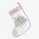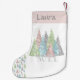 Elegant pastel glitter julstrumpor med glitter Julgranar och texten NOEL i silver och pastel färg, faux glitter och diamanter för flickor i alla åldrar. Anpassa enkelt namn. - Kate Eden Art