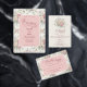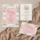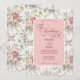 A wedding invitation featuring pastel rose bouquets and a shabby chic design.