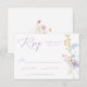 Invite guests to respond to your wedding invitation with this elegant pastel wildflower garden RSVP card featuring a delicate watercolor wildflower arrangement in soft shades of purple, pink, yellow, blue, and white with airy greenery. The graceful botanical design adds a romantic touch while providing space for guests to write their name, indicate whether they accept or decline, and note the number attending. Lavender purple lettering complements the soft pastel florals for a timeless and refined presentation. Perfect for spring and summer weddings, garden ceremonies, and outdoor weddings, this wildflower RSVP card coordinates beautifully with the matching invitation suite.