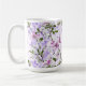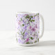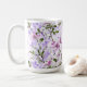 En tygservett prydd med ömtåliga vita och lavendelblommor mot en mjuk blågrön bakgrund, som ger lugnande, naturinspirerad elegans till vardaglig måltid och speciella tillfällen. En förfinad dekorativ accent som förhöjer dukningen och gläder alla som älskar botanisk konst
