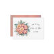 En vattenfärgsillustration som ger en delikat bouquet med persikoblommor och lenspeonier mot en pristinvit bakgrund. Mousserande diamanter är kapslade bland blommarna, medan silver glitter på ett beundransvärt sätt accentuerar hörnen och lägger till en luft av lyx och sofistikering.