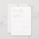 This wedding RSVP card features a minimalist design with ample negative space, creating an elegant and clean appearance. The soft peach tones on a light cream background evoke warmth and sophistication, while the delicate script typography adds a touch of formality. Customizable fields allow guests to respond with ease, making it both practical and stylish for formal occasions. The modern aesthetic balances simplicity with grace, perfect for conveying important information in a visually pleasing manner.