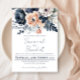 Elegant Peach navy blommigt vattencolor bröllop Inbjudningar