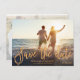 Elegant Peach orange Script 2 foton spara datum Vykort