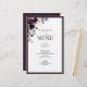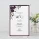 Skapa perfektens mottagningsinställning med det här trendiget 5,5" x 8,5"-menydesignen som innehåller en bukett av plommonets lila, lavender och mauve-blommor och botaniskt grönt, och som är kantad i plommons lila. Anpassa dina detaljer som accentueras med vacker, modern, handskriven kalligrafi. Perfekt för, men inte begränsad för, trädgårdsbröllopet. Del av en matchande uppsättning. Se fullt här: https://www.zazzle.com/collections/plum_purple_floral_watercolor_calligraphy-119555439716895357 Kontakta designern för matchande produkter. Inbjudningskort för Elegant av upphovsrätt, alla höger reserverade.