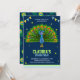 Akta dina gäster med det vackra fredstemat födelsedagsfest inbjudan med en söt påk som visar sina fjädrar med modern typografi mot blå bakgrund. Lägg bara till din händelseinformation i den här mallen som är enkel att använda för att göra den till en inbjudan av typen en. Vänd kortet över för att visa en elegant påfågelfjäder mönster på baksidan av kortet.