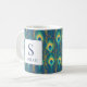 This luxurious personalized mug showcases a rich Art Deco inspired peacock feather pattern in deep navy, turquoise, and metallic gold accents. The stunning design includes a classic framed initial and name. Easily customize it with your name and initial to create a gorgeous monogram gift that elevates any routine. It's the perfect elegant coffee cup for teachers, coworkers, or anyone who loves jewel tones and sophisticated, maximalist decor.