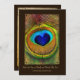 En elegant fredock kallades bröllopsinbjudning med ett vackert foto på en romantisk fredsfjäder med ett royal blått hjärtformade öga inramat i en rik bruna filigree ram och subtle guld som lyder: Innan ögonen av familj och vänner får de. Anpassa anpassadets text på baksidan av denna vackra bröllop-ceremonieinbjudan genom att lägga till namnen på bruden och brudgummen.