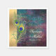 "Elegant Peacock Feathers Jewel Scrollwork Bröllop Pappra Napkins", elegant handmålade vattenfärgade fjädrar för pålder i kombination med diamantjuveler över folie gräns och guld färg vattenfärg och dammmönster i guld. Peacock ludderkonst och grafisk design av internationellt licensierad konstnär och formgivare, Audrey Jeanne Roberts, copyright.