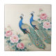 Elegant Peacocks Pink Peonies Asian Kakelplatta