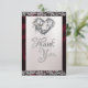 Design features a white pearl satin background with ribbon & sparkle borders, stylish script & elegant fonts. A thoughtful way the thank your friends, family & guests who graced you with their presence on your special day. Also available with different colored ribbon for your wedding theme colors. Designed to coordinate with the "Romantic Hearts, Ribbon & Sparkle on Pearl" collection. To change details, click «Personalize». To move the text or change the text size, font, or color click «Click to customize further»
