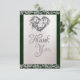 Design features a white pearl satin background with ribbon & sparkle borders, stylish script & elegant fonts. A thoughtful way the thank your friends, family & guests who graced you with their presence on your special day. Also available with different colored ribbon for your wedding theme colors. Designed to coordinate with the "Romantic Hearts, Ribbon & Sparkle on Pearl" collection. To change details, click «Personalize». To move the text or change the text size, font, or color click «Click to customize further»