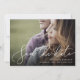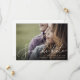 Ett modernt sätt att spara datumkortet designat för att passa ditt favoritfoto av vågrät eller den landskapsinriktade förlovningen med fullt. "Spara datumet" visas nära grund på fotot i en vit handskriven stil-skriptskrift med texten namn, bröllop och bröllop under. På sidan Bakåt visas ytterligare information om hur du sparar datumet, inklusive bröllop webbplats.