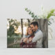 Ett elegant bröllop sparar det designade datumvykortet för att passa ditt favoritfoto för vågrät eller fullt-utfallsorienterad förlovning. Namn visas som ett vitt textöverlägg i ett modernt handskript. Anpassa med ditt bröllop-datum och bröllop-läge under. Kort som går tillbaka till ett litet botaniskt mönster med utrymme för att inkludera webbplatsens URL för bröllop eller ytterligare information som du väljer. Du kan ändra färg genom att klicka på Anpassa/Anpassa och sedan välja ny bakgrund färg antingen från paletten eller genom att ange en färg hex-kod.