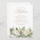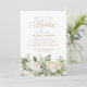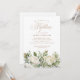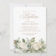 Elegant Peony Blommigt Script Baptism-inbjudan är ett vackert exempel på vita böner och grön.