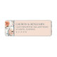 Dessa returadressetiketter har en mjuk persikofärgad bakgrund med ömtåliga blomsterkanter, vilket skapar en elegant och romantisk estetik. Designen omfattar stora peonior i nyanser av blekt orange och kräm, kompletterade med grön lövverk, arrangerade symmetriskt för att rama in det centrala textområdet. En sofistikerad serif-teckensnitt tillför formalitet, medan den balanserade layouten säkerställer klarhet och grace. Perfekta för formella tillfällen, förmedlar dessa etiketter värme och firande genom sin harmoniska färgpalett och ömsinta blommiga bilder.