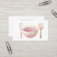 Elegantens vattenfärgsillustration: affärskort med med visk, sked och skål. Lägg till ditt namn i en böjd söt ovanför skålen. I
