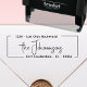 Elegant modern minimalist handskriven typsnittskrift vigselinbjudan returadress självbläckande stämpel. Dessa enkla familjenamnsadressstämplar med efternamn i ett vackert handskrivet typsnitt kalligrafi och returadressinfo, lätta att anpassa dem. Spara tid och lägg till stil till din vigsel inbjudan Spara datum, Bröllopsdusch, Födelsedagsfest, RSVP, Baby Shower, Husuppvärmning, Examen meddelanden, Julkort och returadressetikettstämpel för inbjudan. De gör till och med bra julklappar till familjemedlemmar och vänner, söta husvärmegåvor eller bröllopsgåva till ett nystartat par!