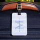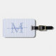Res med stil med denna eleganta personliga bagagetikett, designad för att tillföra en chic touch till varje resa. Med en mjuk blå-vitrandig bakgrund visar den ena sidan din monogram-initial och namn i ett prydligt skrivstil, medan baksidan har plats för dina kontaktuppgifter för trygghet under resans gång.