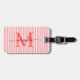 Res med stil med denna eleganta personliga väsketikett, designad för att tillföra en chic touch till varje resa. Med en mjuk röd och vit randig bakgrund visar ena sidan din monograminitial och namn i ett prydligt skrivstilsskrift, medan baksidan har plats för dina kontaktuppgifter för trygghet under resan.
