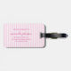 Res med stil med denna eleganta personliga bagagetikett, designad för att lägga till en chic touch till varje resa. Med en mjuk rosa och vit randig bakgrund visar ena sidan din monogram-initial och namn i ett prydligt skrivstil, medan baksidan har plats för dina kontaktuppgifter för trygghet under resans gång.