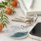 Den här vackra nyckelkedjan har en elegant grått och vita marmor med guld och mörk teal abstrakt design. Anpassa den med namn eller monogram.