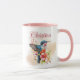 En hummingfågel med elegant som vilar på en rosa blomma i vattenfärgsdesign. Mönstret trycks på båda sidor om mugg för lämnat använda eller höger. Anpassa enkelt till namn. Gör en underbar gåva till dem som kärlek dessa vackra och färgstarka speciella små fåglar.